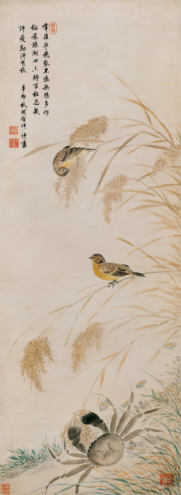 艺术微喷:明 项圣谟 稻蟹图