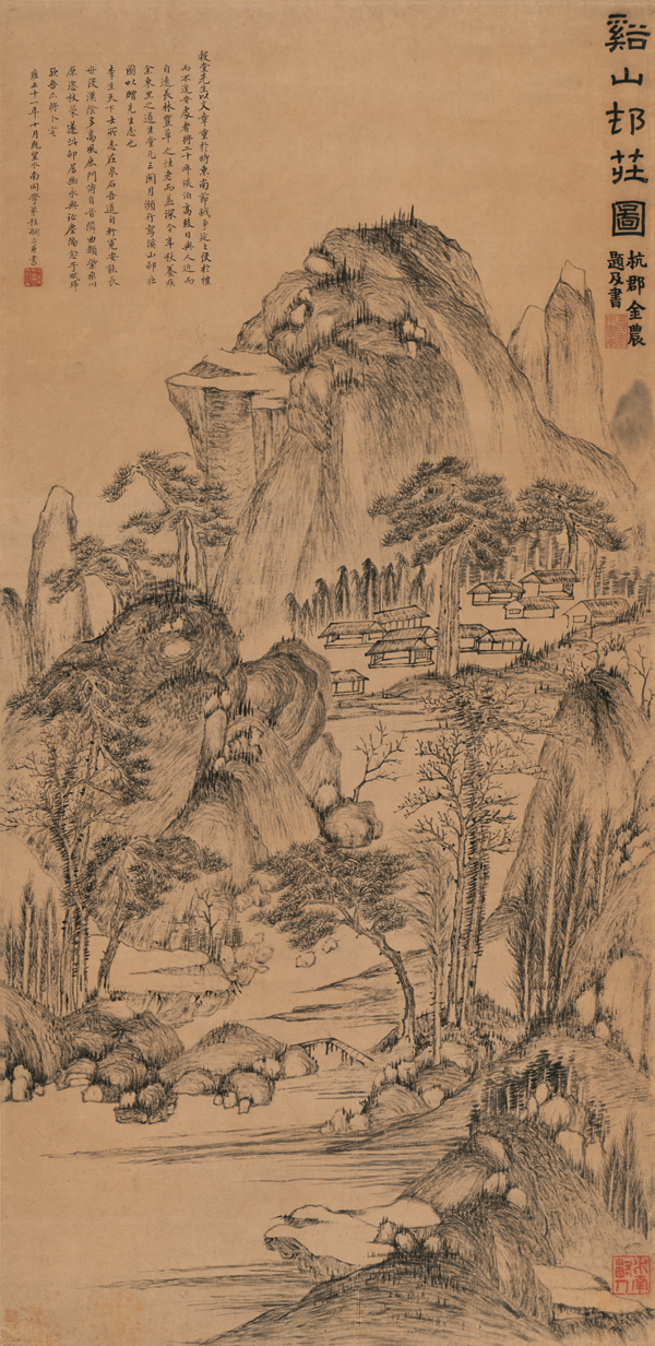 艺术微喷:清 程嗣立 溪山村庄图