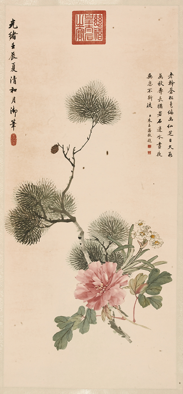 艺术微喷:清 光绪 枞树牡丹图